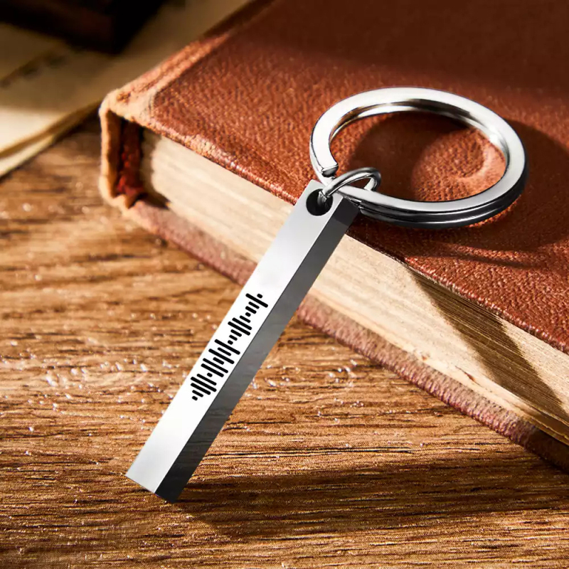 Custom Scannalbe Music Code Keychain Custom 3D Engraved Vertical Bar Keychain Stainless Steel