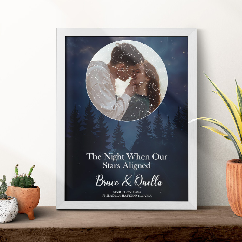 Custom Star Map Romantic Photo Frame Personalized Wall Art Gift for Couples Wedding or Anniversary Gift