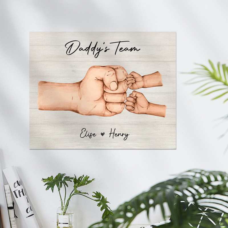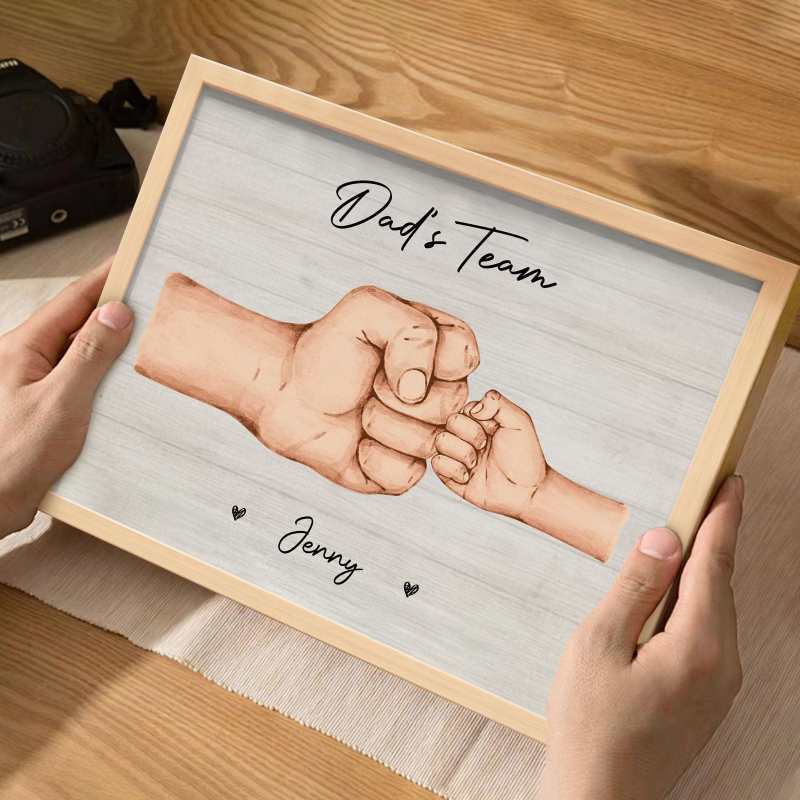 Personalized Daddy & Kids Together We're A Team Family Frame Custom Horizontal Poster Frame Father's Day Birthday Gift For Dad