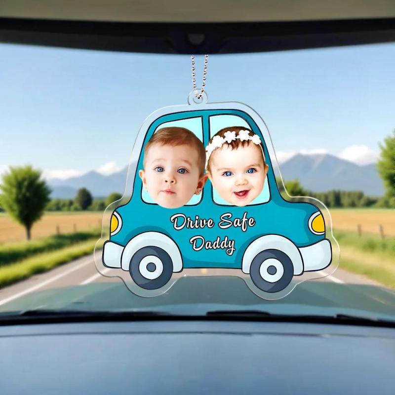 Drive Safe Daddy Personalised Car Photo Ornament Father's Day Gifts Car Rearview Mirror Hanging Accessories -
