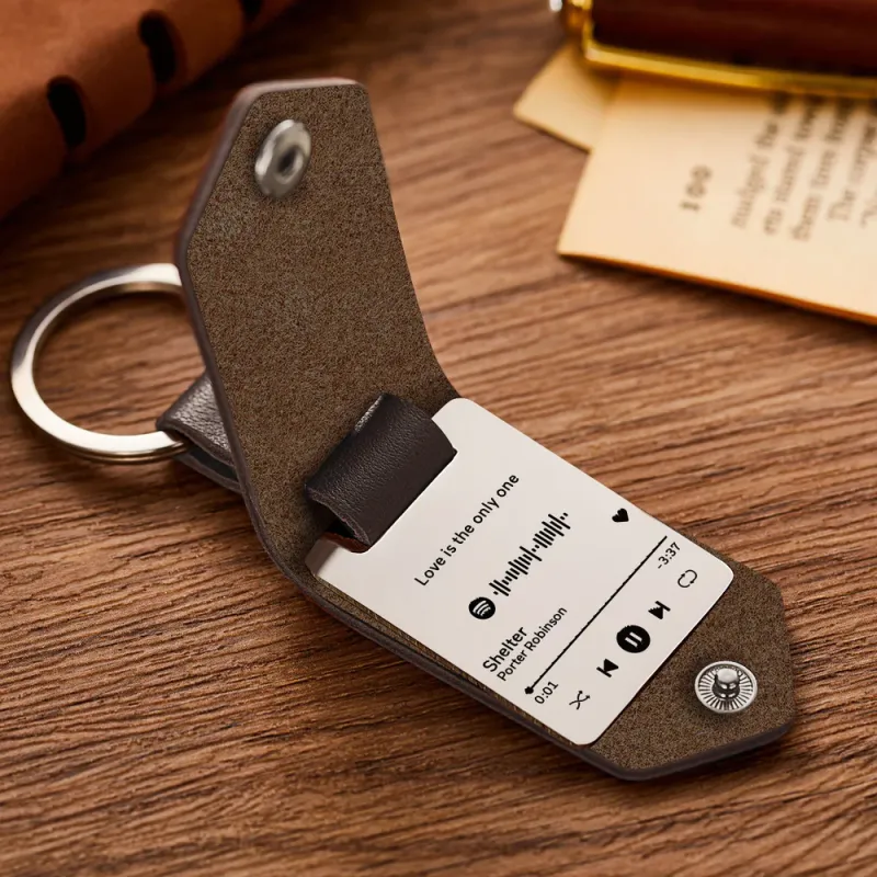 Gift For Dad Scannable Spotify Code Keychain Custom Engraved Music Song Keychains Leather Gifts for Couple