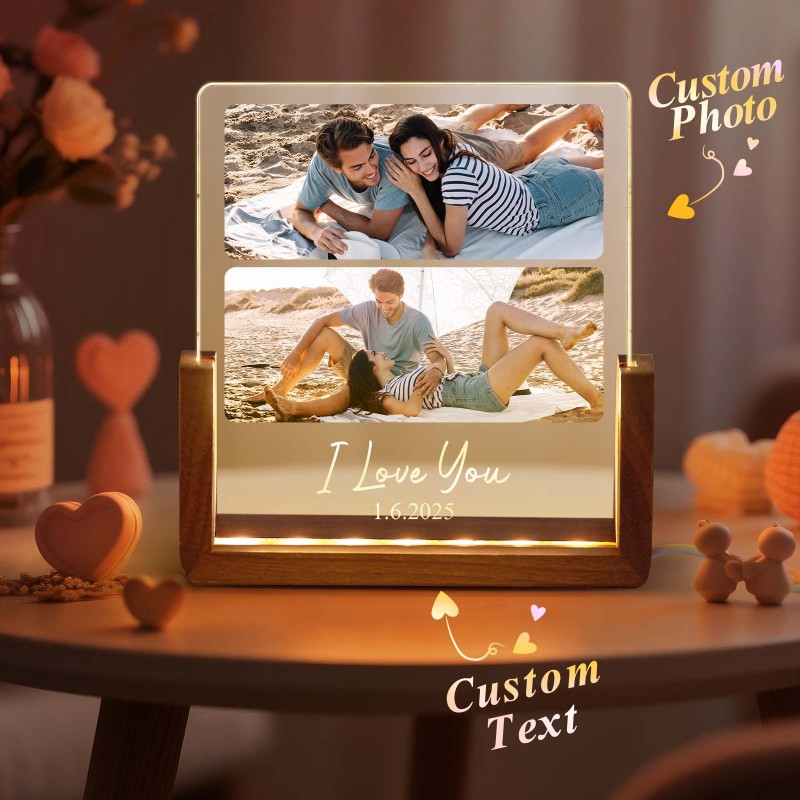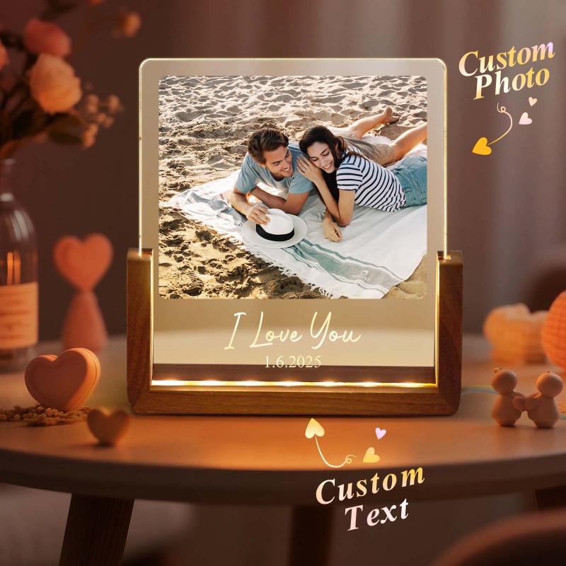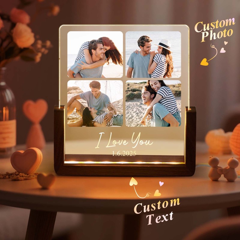 LED Acrylic Night Light with Custom Photos Personalize with Photos and Text Good Memories Gift for Couples