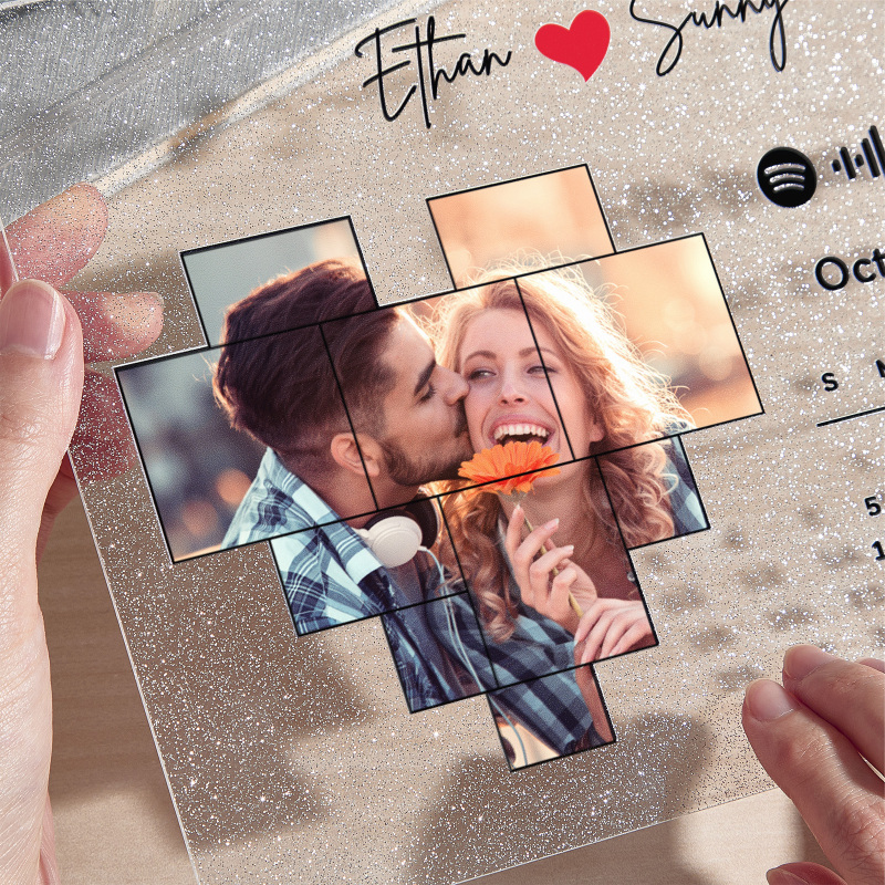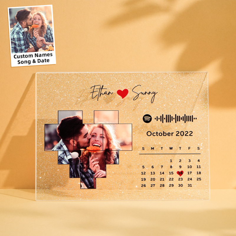 Personalied Photo Calendar Glitter Acrylic Plaque Spotify Song Decor Anniversary Gift