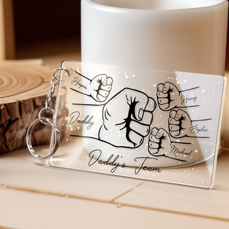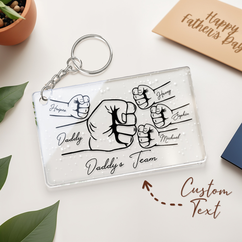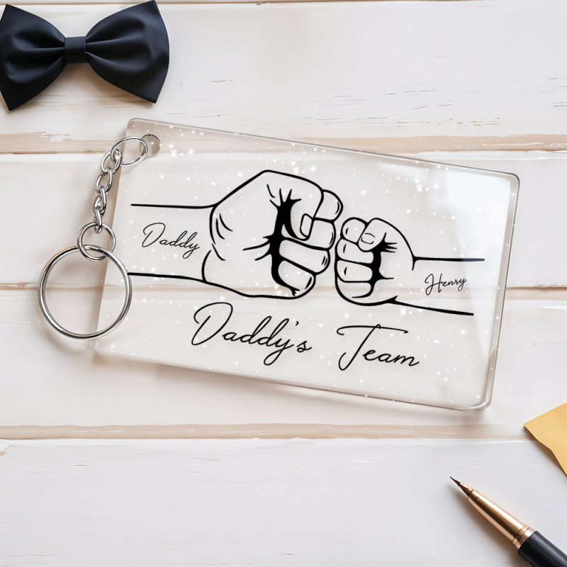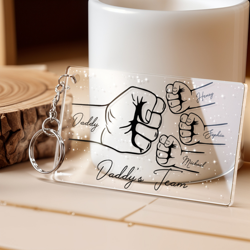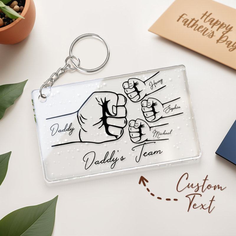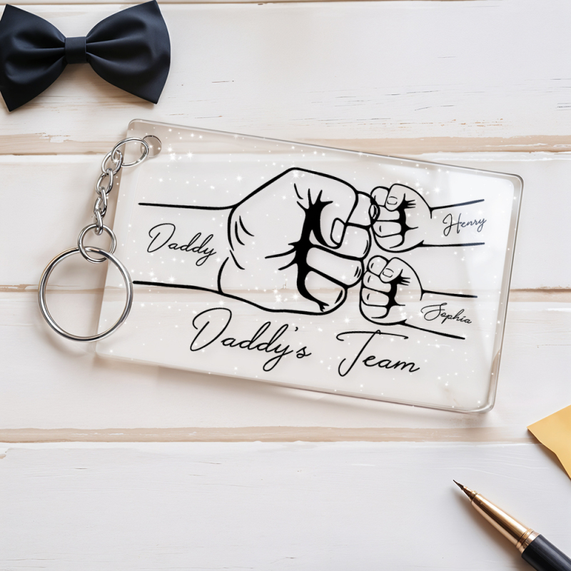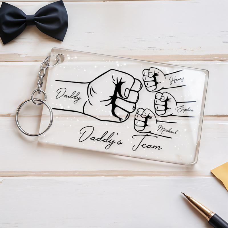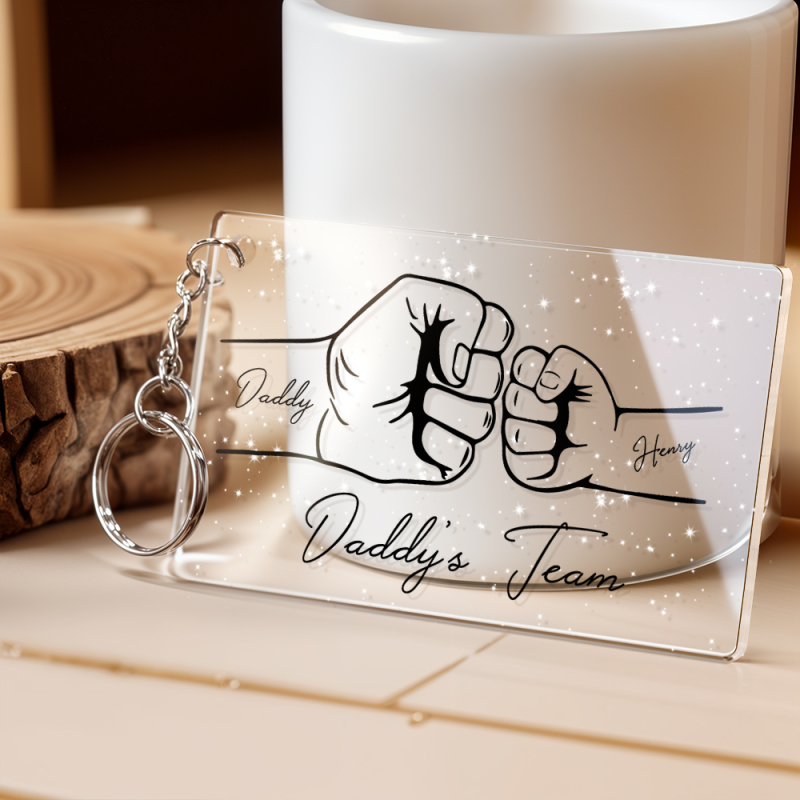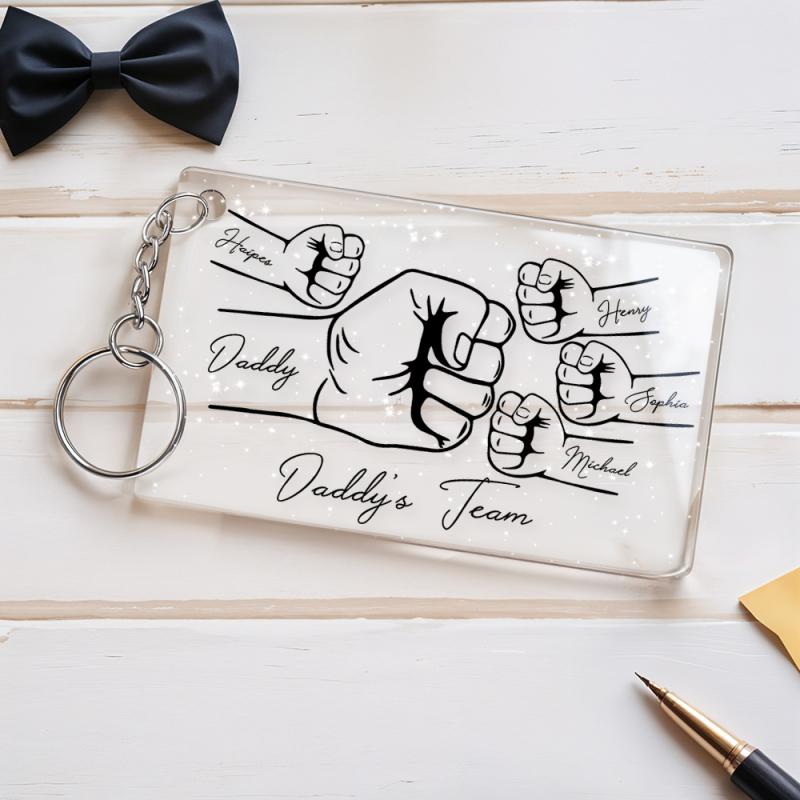 Personalized Daddy's Team Fist Bump Keychain, Custom Dad Acrylic Keychain, Father's Day Gift from Kids, Father's Day Gift for Daddy Grandpa