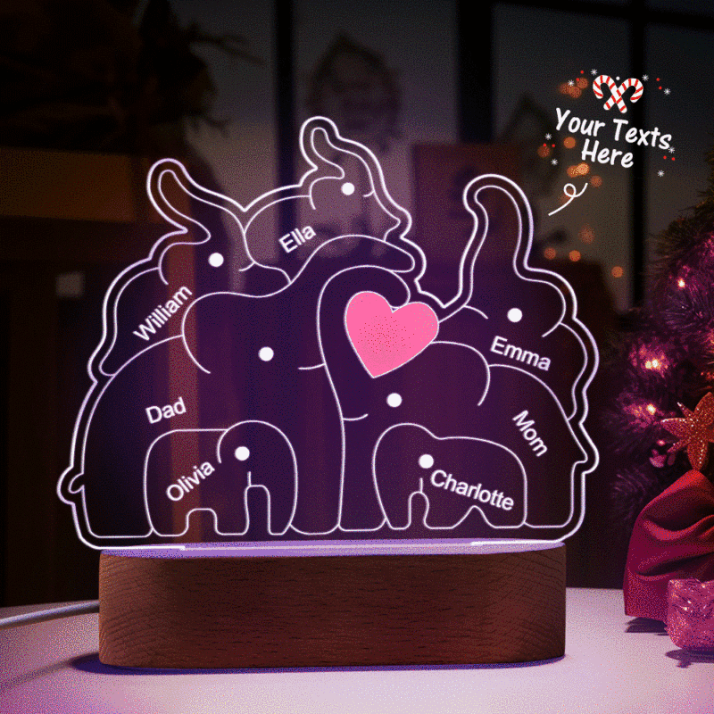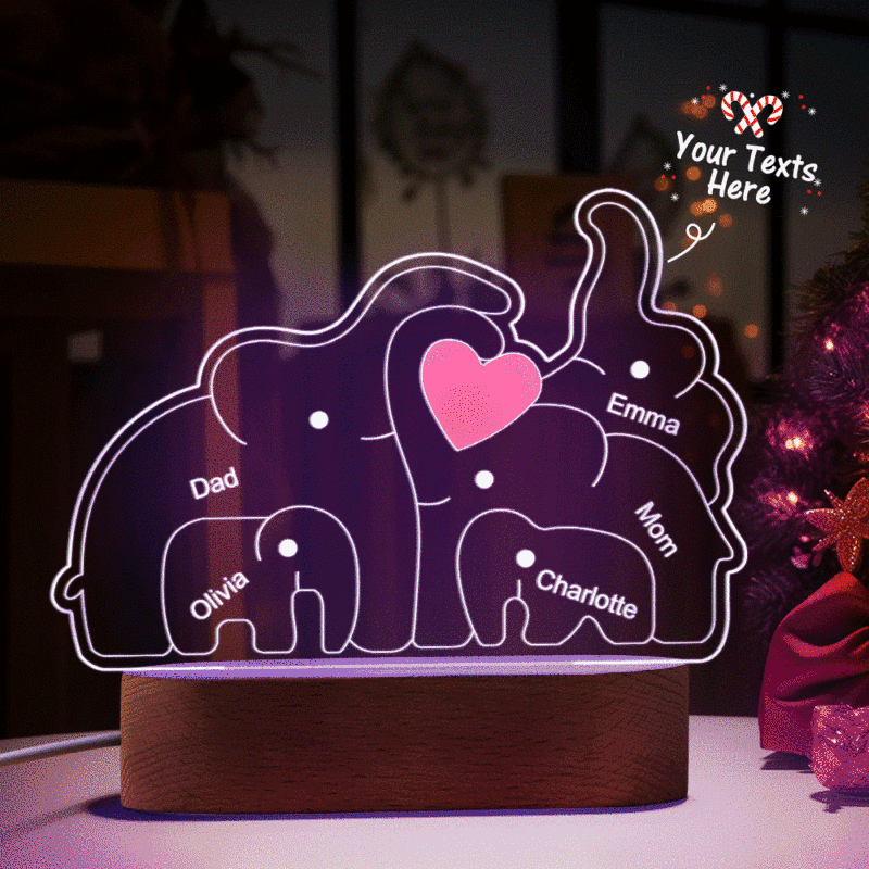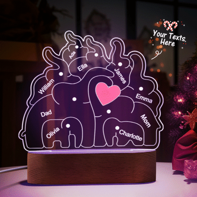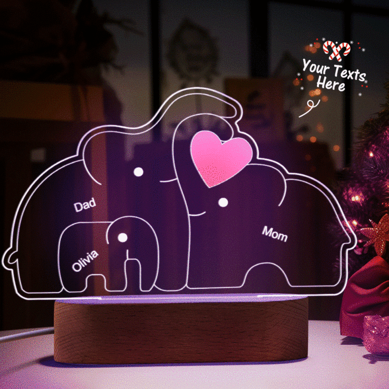 Personalized Names Elephant Family Acrylic Lamp Custom Night Light Best Christmas Gift