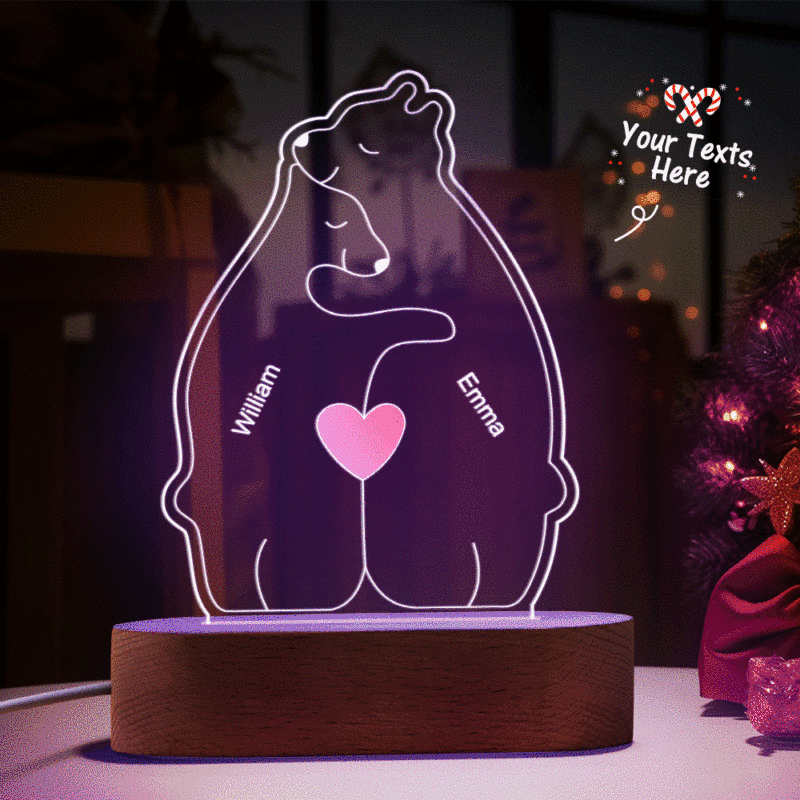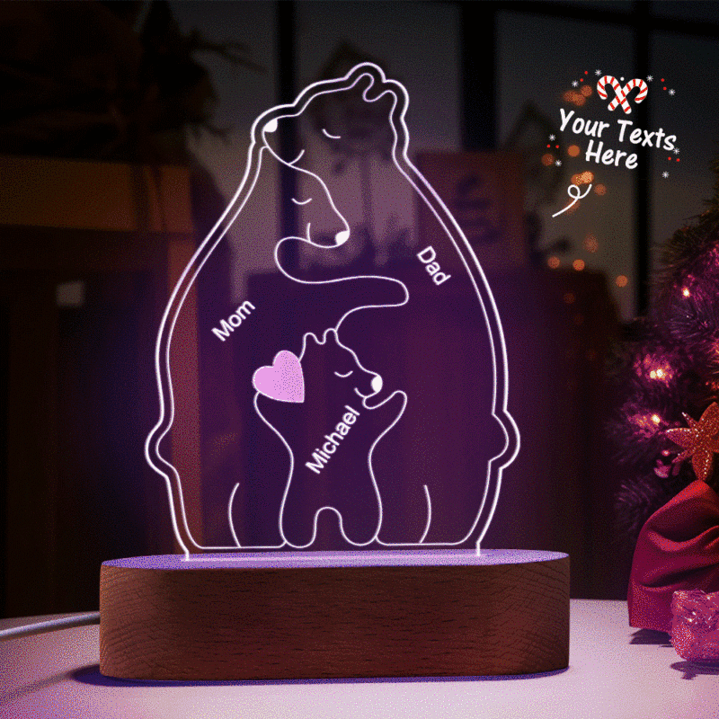 Personalized Names Warm Bear Family Acrylic Lamp Custom Night Light Best Christmas Gift
