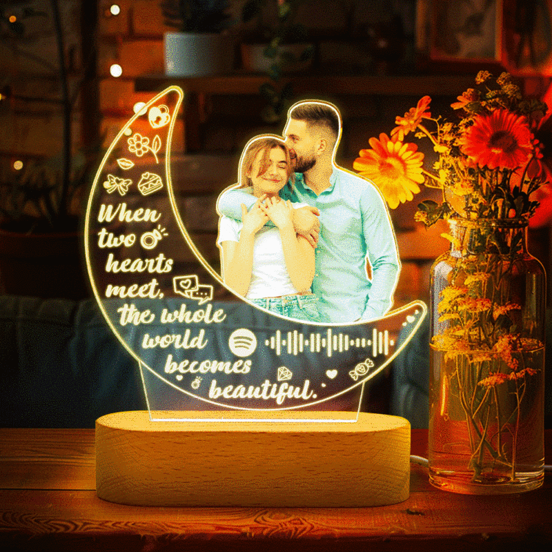 Personalized Photo Acrylic Moon Lamp Custom Night Light Gift for Couple Home Decor