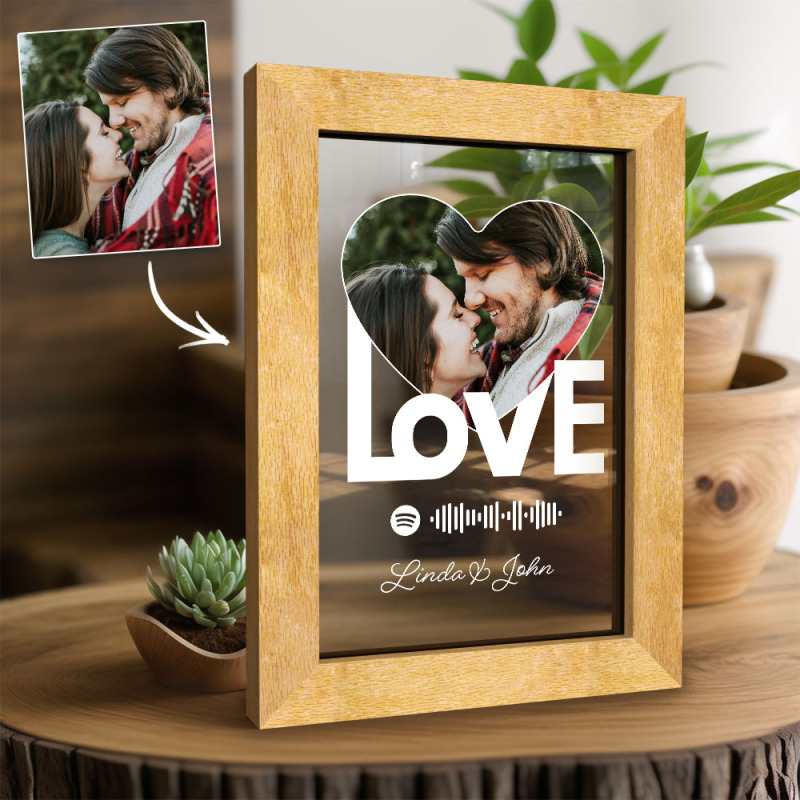 Personalized Photo in Wooden Frame Led Lamp Perfect Gift for Night Lamp Lovers & Music Lovers