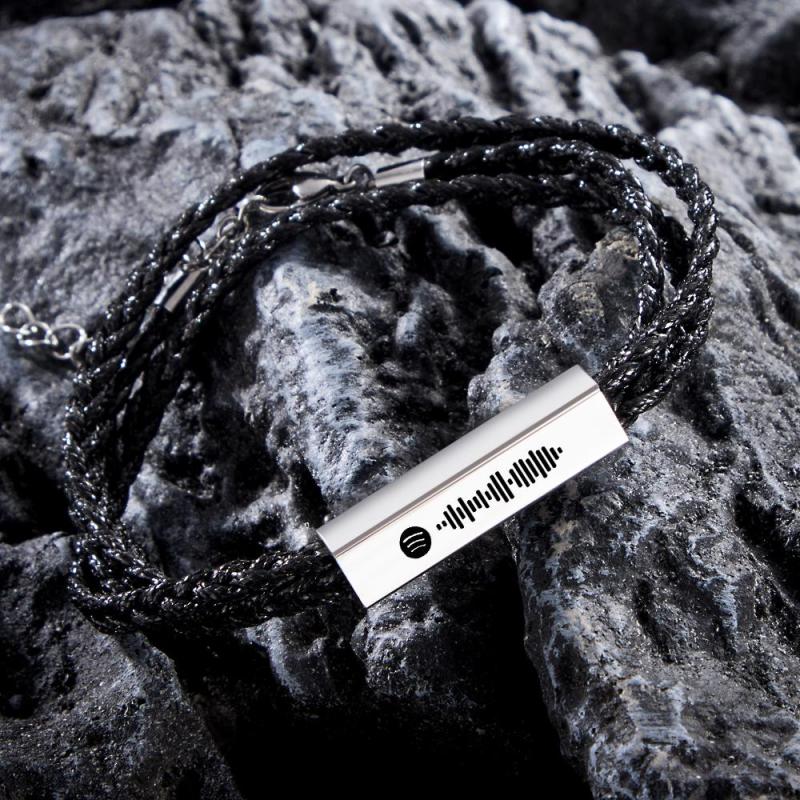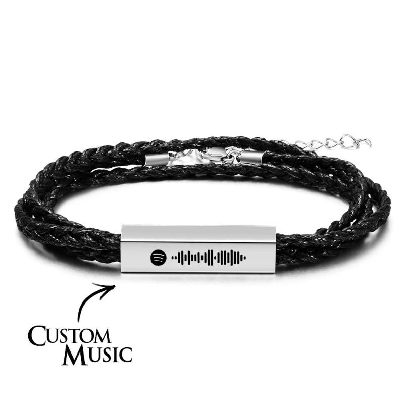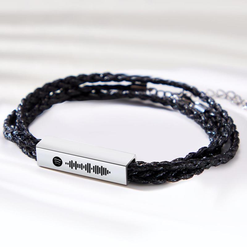 Home / Custom Spotify Leather Bracelet Personalized Engraved Music Code Mens Bracelet